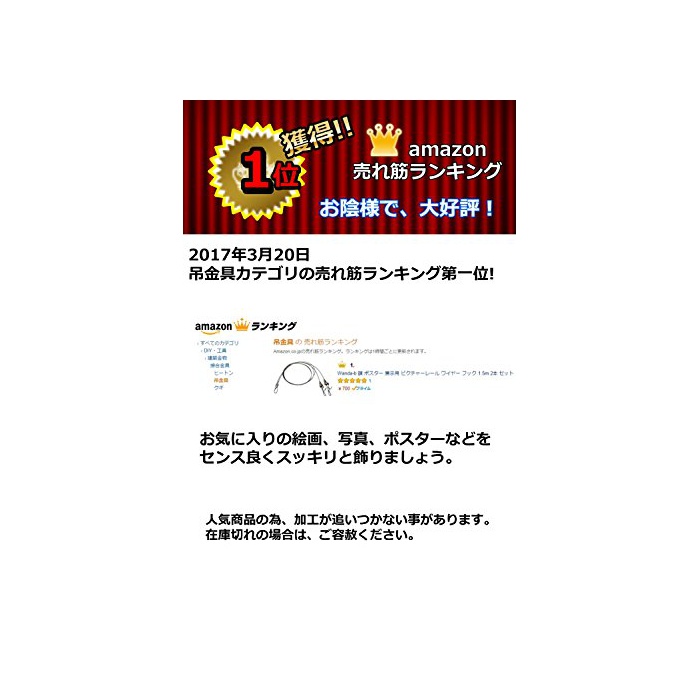원본상품명:Wanda-b 額 ポスタ 展示用 ピクチャレル ワイヤ フック 1.5m 2本 セット