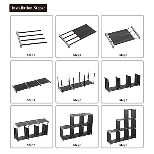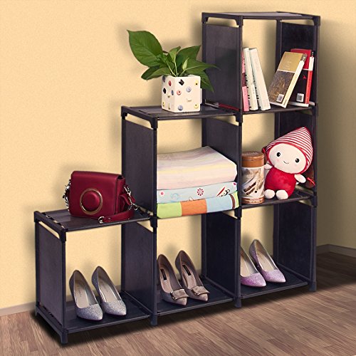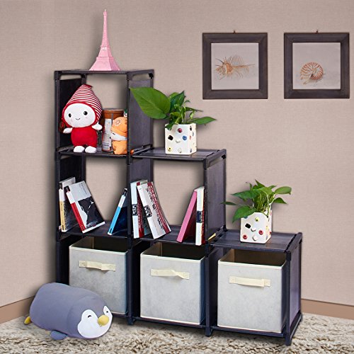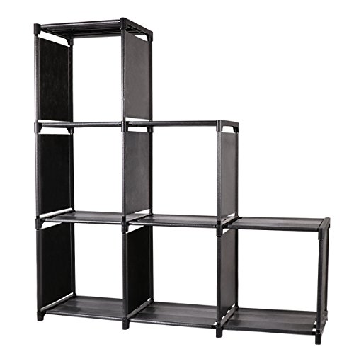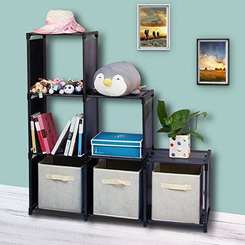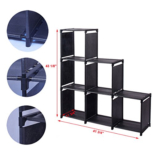 WISHWILL 6-Cube Storage Organizer Cabinet with 3-tier Shelf Closet for Toy/Book/Shoe/Clothes Black