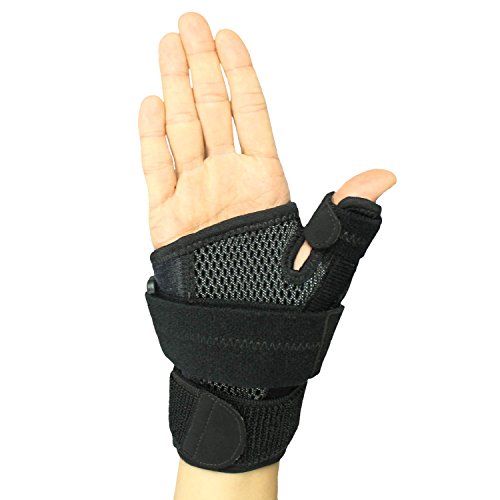 -. Feature : REMOVABLE THUMB SPLINT:Individual thumb hole and removable splint keep thumb immobilized and protected from injury. / INJURY SUPPORT: This brace is perfect for aiding in recovery from injury to the thumb, in addition to providing relief from thumb pain caused by arthritis or carpal tunnel syndrome. / EXTRA-STRENGTH STRAPS: We use the highest quality latching straps on the market to prevent discomfort and constant readjusting. / BREATHABLE NEOPRENE: Ideal for active users, this support is designed to keep you cool and comfortable. / UNIVERSAL SIZE: Can be worn on right or left hand. Three Velcro straps allow you to customize the fit of your brace to your exact requirements.