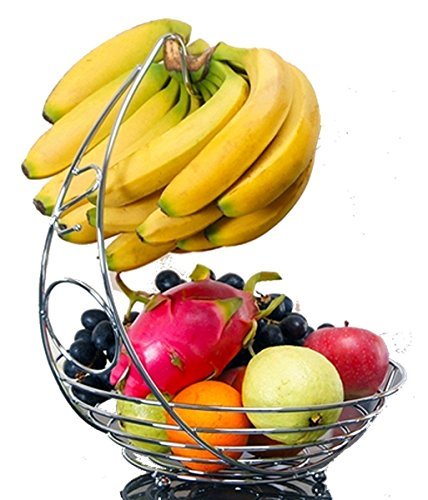 Our elegantly designed fruit basket with banana holder grabs attention while providing you with a sturdy, sensible storage place for your apples, oranges, pears, plums, small melons and more. The fruit basket provides two levels to ripen and store fruit - an 11.5 inch diameter bowl and a hanging hook that is perfect for bananas or grapes.
