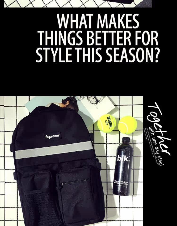 春夏新款时尚潮流男士双肩包superme背包潮男学生字母背包潮