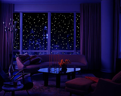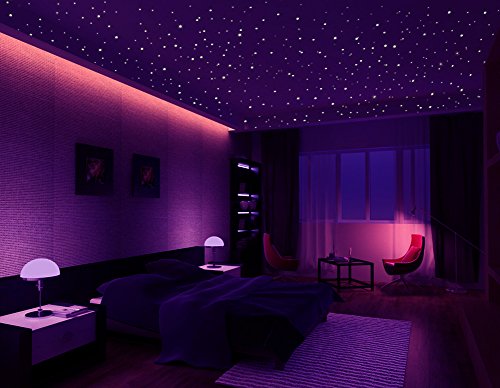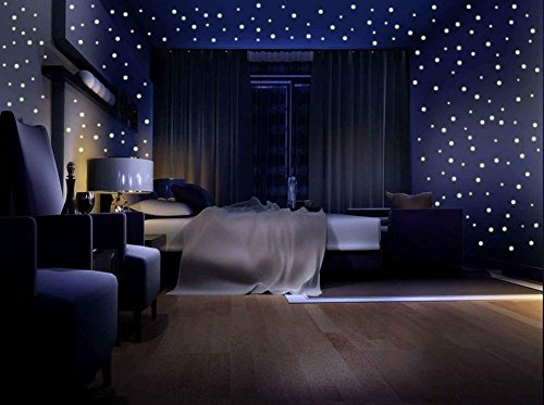 - 407 realistic glow in the dark stars, these dots are not flat but are domed to create a realistic starry sky. In the morning it's white clean look, the dots merge with the wall ,and in the dark the room become to starry shiny bedroom.
