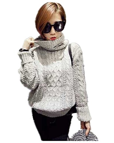 -. Title : Lingswallow Women Casual Turtleneck Oversized Cable Knit Pullover Sweater Green [並行輸入品]