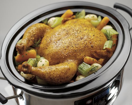 - Feature : Reduce messy spills with clip-tight gasket lid / 3 choices for easy, automatic cooking: probe, program and manual / Perfect for a 6 lb. chicken or a 4 lb. roast / Thermometer probe displays the actual temperature of meat as it cooks / Full-grip handles make carrying heavy meals easier