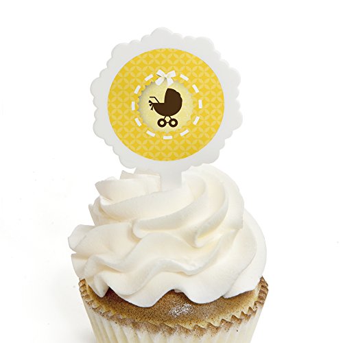 Cupcake toppers include 12 white decorative cupcake picks and 24 round sticker labels.