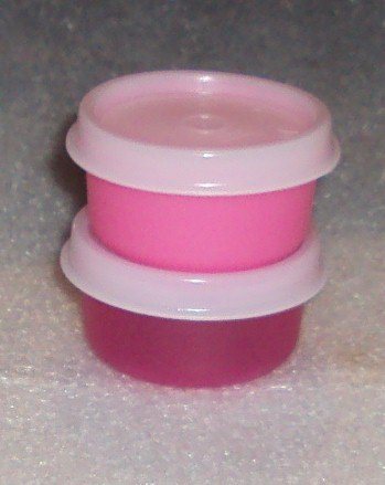 -. Feature : Set of 2 Tupperware Smidgets in shades of pink / Measure approx 1 3/4" diameter x 1" deep, hold about 1 ounce / Includes 1 fuchsia pink and 1 punch pink / Virtually airtight, liquid-tight seals / Dishwasher safe