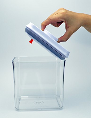 - FOOD CONTAINER WITH LIDS AIRTIGHT - When the button on the lid is pushed down, it expands to seal the canister, creating an airtight seal. Pop the button back up and it becomes the handle to lift the lid. The seal ensures your cereal, flour, sugar will stay fresh for a long time.