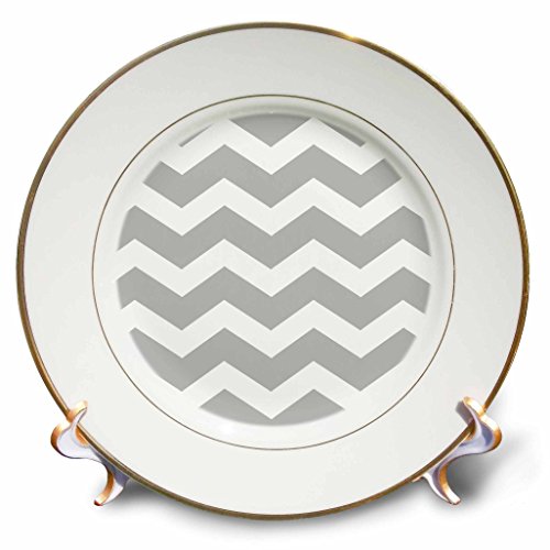 3dRose cp_179675_1 Gray and White Zig Zag Chevron Pattern Light Grey Silver Zigzags Porcelain Plate, 8"