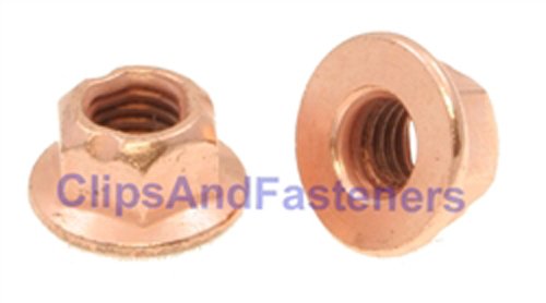 25 M8-1.25 Flange Exhaust LockNut Copper Plated 12mmHex