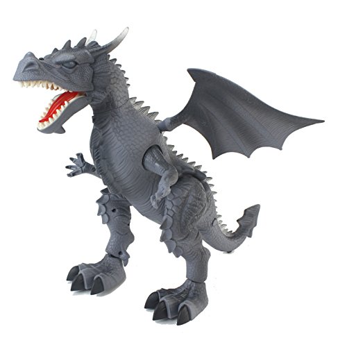 -. Title : The New World Of Dinosaurs Battery Operated Remote Control Toy RC Gray Dragon w/ Lights, Sounds, Walking/Wing/Mouth Action, & Flashlight Remote Control