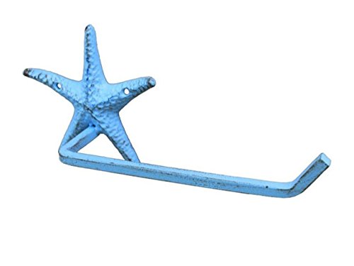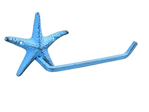 Hampton Nautical K-9209-solid-light-blue Rustic Light Blue Cast Iron Starfish Toilet Paper Holder 10" - Beach Bathroom Decoration - Beach Home