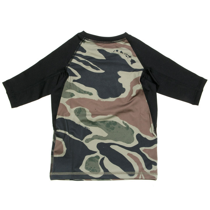 バツグンのストレッチ性の生地で肌に密着し、速乾性の高い半袖ラッシュガードです。肩周りは可動域の広いラグランスリーブになっていて、サーフィンは勿論、水遊びを思いっきり楽しめ、UV50+加工で紫外線からも肌を守ります。また、シンプルなソリッドカラーに栄えるロゴを両腕に配置し、大人顔負けの落ち着いたデザインもオススメポイントです。