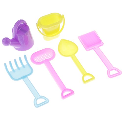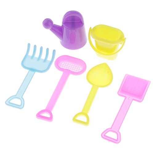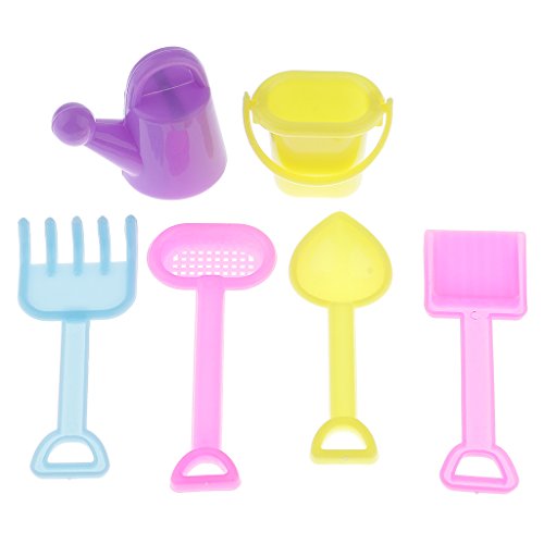 Description: - 6 Pieces Fairy garden tools ( Toy Watering Can, Bucket ,Rake, Spade ) set for dollhouse or garden scenery model - Great for 1/6 Barbie dolls house and other 1/6 29cm/11inch dolls accessories - Perfect Kids pretend play toys and birthday/Chrismas gifts for girls - Material: Plastic - Color:Random Specification: - Watering Can:(L*W*H)approx. 2.8*2.8*4cm/ - Bucket :(L*W*H)approx. 3.8*2.3*3.2cm/ - Sand leakage shovel :(L*W*H)approx. 8*3.3*0.7cm/ - Rake:(L*W*H)approx. 7.6*3*1cm/ - Heart Spade:(L*W*H)approx. 7.5*2.6*1cm/ - Square spade :(L*W*H)approx. 8*2.5*0.5cm/
