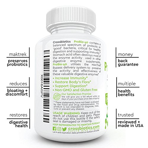 PURE, SAFE and EFFECTIVE: Crossbiotics ProBio-40 is Scientifically formulated and Made in the USA in a GMP certified facility. We're committed to ensuring that every product meets the highest quality control procedures for purity, potency, and safety. Buy now and try completely risk free! 100% SATISFACTION GUARANTEED!