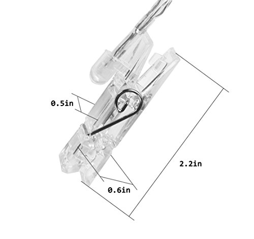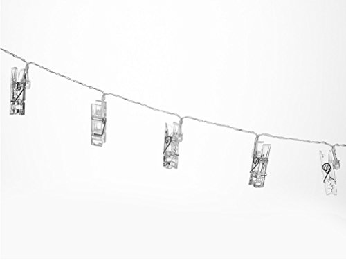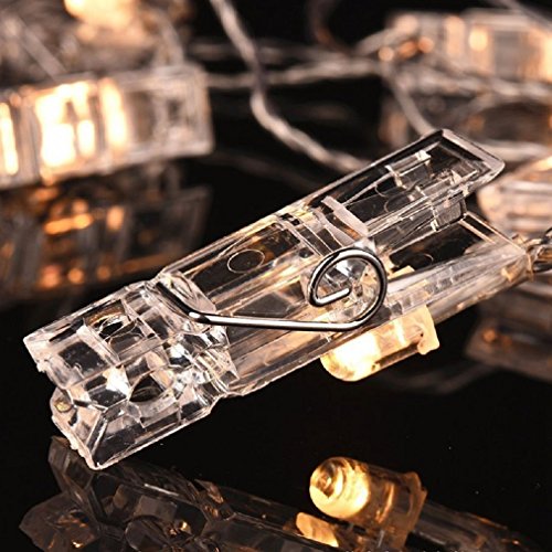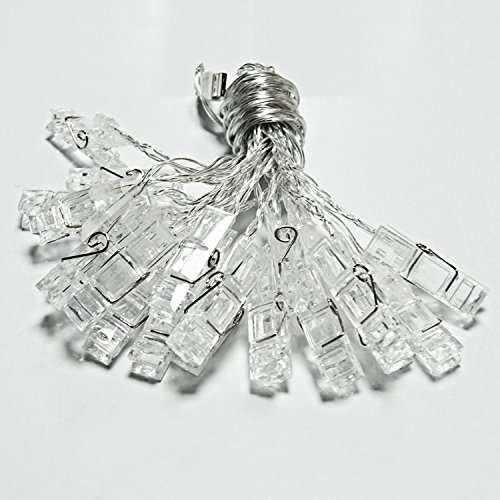 - 30 CLEAR PHOTO CLIPS - Each clip contains an LED that emits warm white light Total length is 10 feet. clips are spaced 4 inches apart, enough space for most artworks and photos. Each LED bulbs equipped with a transparent clips, and the clips are sturdy, your photos never fall off, you just need clamp it tightly
