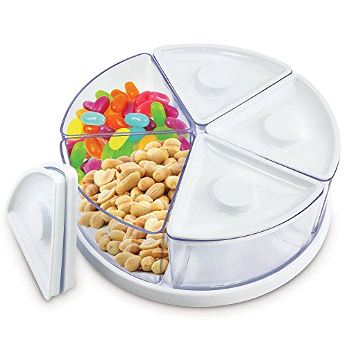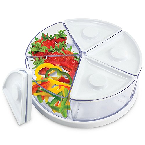 KOVOT Lazy Susan Food Storage Containers with Lids On A Rotating Turntable, 24 oz, Clear/White