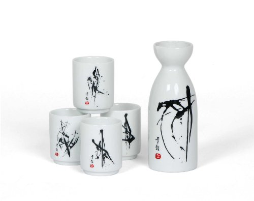 Studio : Miya Company Inc Publisher : Miya Company Inc Binding : Kitchen Product Description Sake for four. serving sake from a true sake bottle makes the experience infinitely more enjoyable. this set features a simple and clean abstract design open for your interpretation. made in japan. 0
