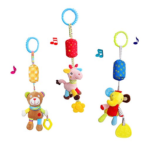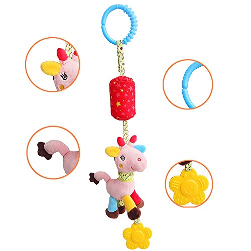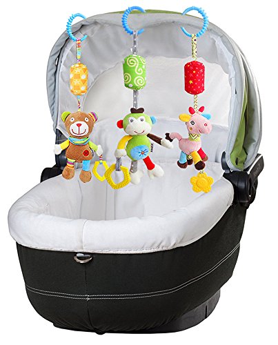 -. Feature : ❀ Our crib toy with a balance between bright color,cute animal,high contrast patterns and rattle sound that help stimulate baby's abilities. Learning from playing.Your baby can learn colors name and animal while playing.They will happy to play with this cute friends. / ❀ Each car seat hanging toy built-in wind chime.It will makes soft sound to attract your baby when shaking,help parents to play with babies. / ❀ This musical rattle hanging toy with a clasp at the top,you can hang it around bed or car seat,very easy to hang or take down.Also allows the baby holding a toy to play,training baby's hand-eyes coordination. / ❀ This musical stroller toy makes a great present for any expectant mother, newborn baby or toddler boys or girls.Give it as a special gift for baby showers, birthday parties or Christmas gatherings.Babies will love and enjoy these toys, and parents will appreciate you for such a thoughtful and engaging gift. / ❀ All of car seat toys for baby are with a teether.They allow your baby to gnaw and bite.BPA-free and Non-toxic silicon teether to soothe their aching of gums.Help to relief your baby teething painful and supply comfortable feeling to them.