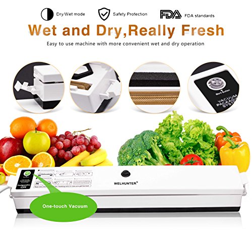 🥕Multifunctional Sealer:Vacuum Seal Mode and Seal Only Mode.Welhunter Vacuum packing machine can suck the air out of the sealer bags quickly and completely,15pcs Sealer bags included.