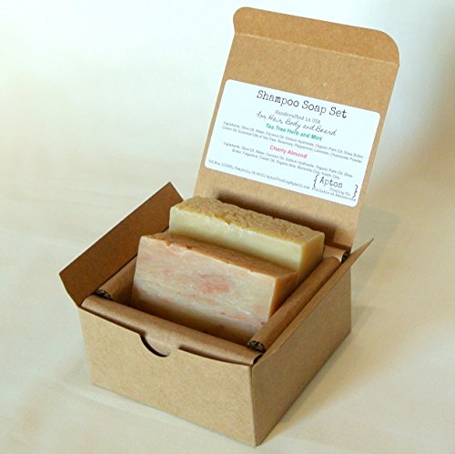 -. Title : Shampoo Soap Gift Set (2 Full Size Bars) - Cherry Almond, Tea Tree & Mint Hair/body/beard Soaps - Perfect for Camping & Traveling - Handmade with all Natural / Organic Ingredients