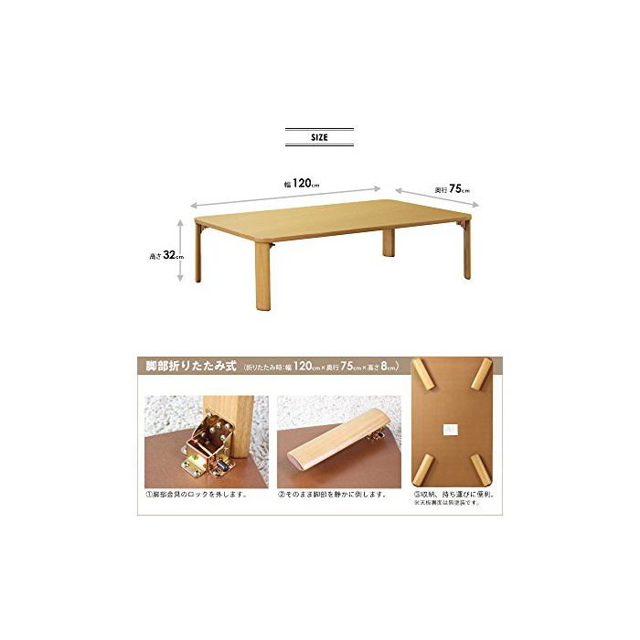 바위부 테이블 120×75cm 로우 테이블 폭120 센터 테이블 좌탁접이식 부러짐각 밥상 IW-1275NA
