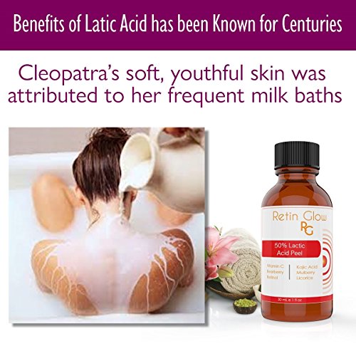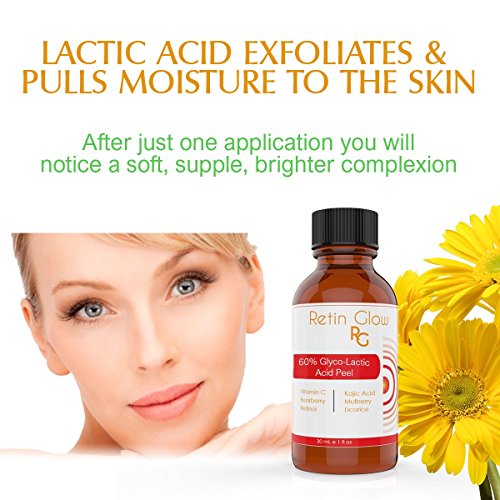 Size of Peel: 1 oz (30mL) Size of Neutralizer: 4 oz (120mL) This chemical peel is designed for easy at-home application. Both beginners and experienced users can benefit from this 80% Lactic Acid peel. It is likely to experience visible skin peeling as the acid works to remove dead, dull skin cells. Lactic acid is an alpha hydroxy acid (AHA) that is derived from fermented milk. It gently exfoliates the skin to brighten the skin tone, combat acne, fight wrinkles and improve skin texture. Lactic acid is generally milder than other peels and helps the skin to maintain its ideal pH factor. Lactic Acid penetrates beneath the surface of the skin to stimulate collagen and elastin. Increased collagen production restores a youthful appearance as it makes the skin thicker and firmer. This makes the skin less prone to wrinkles and sagging. Formulated with the most effective skin lightening ingredients. Bearberry, Kojic Acid, Mulberry, Licorice and Vitamin C have been proven to naturally lighten the skin and erase dark spots and fade skin discoloration. Retinol vigorously fights signs of aging and restores skin's youthful appearance. As a bonus gift you will also get a large 4 oz bottle of the After Peel neutralizer. The After-Peel Neutralizer is needed to stop the action of the chemical peel. It deactivates the acid and prevents the peel from penetrating further into the skin and causing burns. It also helps to restore skin to a normal pH level. The soothing botanicals, aloe Vera, green tea and chamomile will calm the skin and promote healing. The silky texture of the After-Peel Neutralizer makes it easier to use and it is more soothing and less messy than gritty baking soda.Feature
