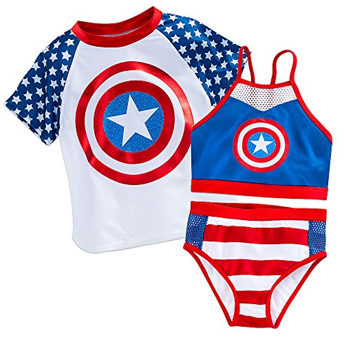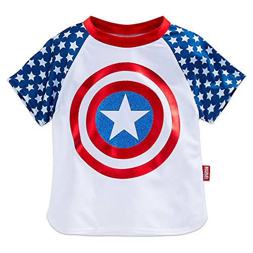 Your aquatic super hero will take a dive into the role of Captain America with this swim set. With the three pieces decorated in signature character details, beach play just got patrioticFeature