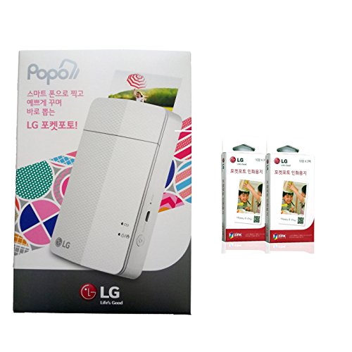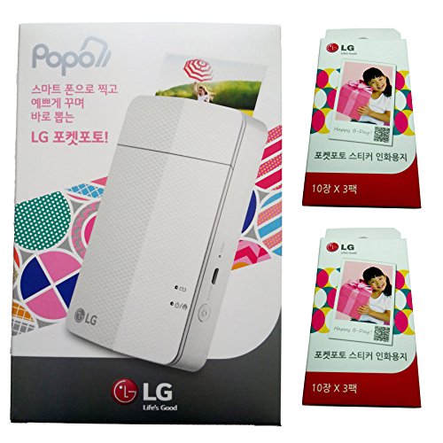 Contents: LG PD251 Printer White + Zink Sticker Type Photo Paper 60 Sheets