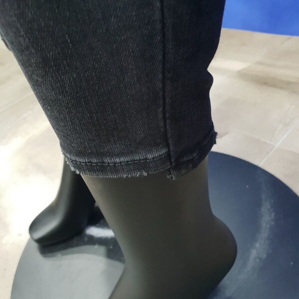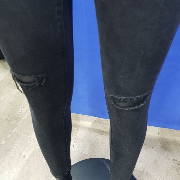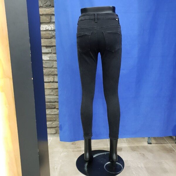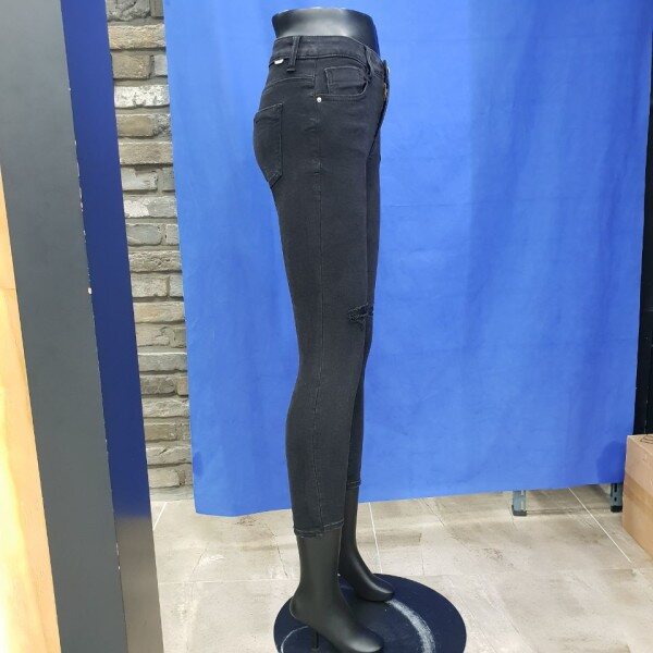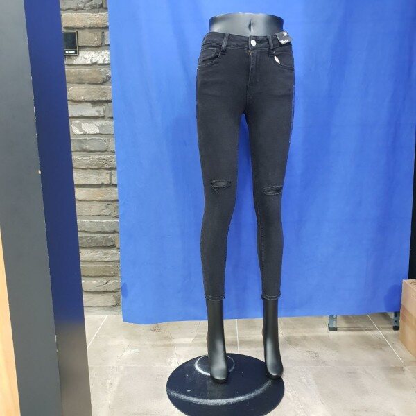 밑위가 편안한 블랙 워싱의 기모 컴포트 라이즈 크롭 스키니 핏. 심플한 블랙컬러에 무릎 양쪽에 오픈구제 워싱하여 스타일리시해보이는 데일리 블랙 데님 제안.( 여성사이즈->64(25),67(26),70(27),73(28),76(29),79(30)입니다.)
