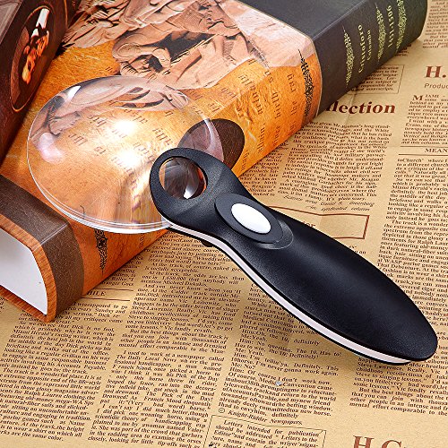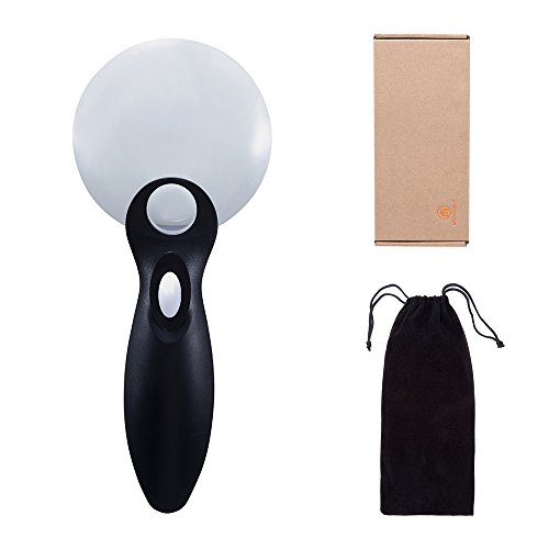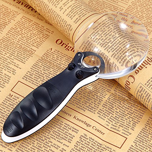 No Border LED Lighted 10X 20X Magnifier, 90mm Large Magnifying Glass With 2 Lights, Best for Reading