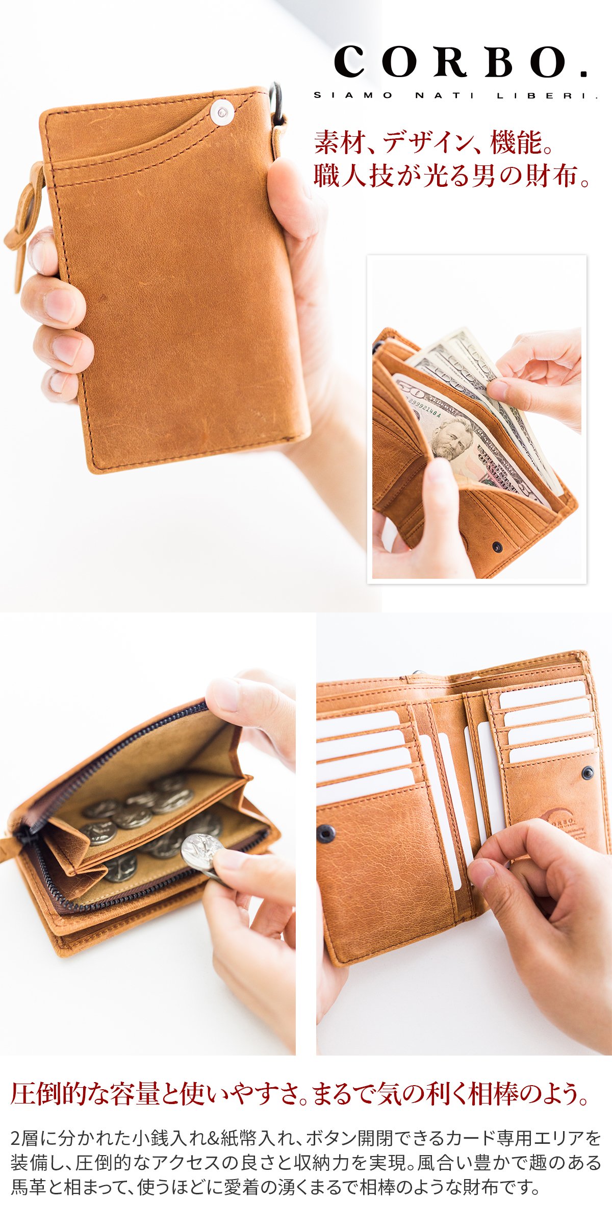 【Storage specification】 ◆ Banknote insertion: 2 places, coin purse: 1 place (L shape fastener type / 2 layers type)