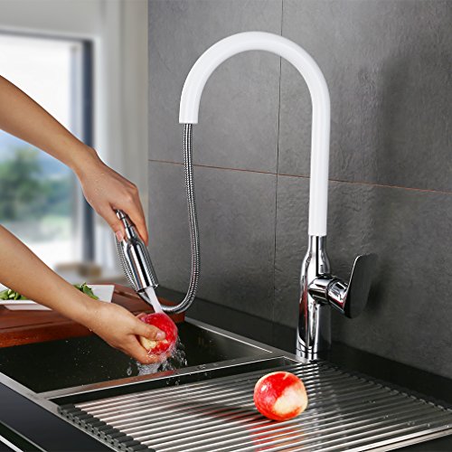 -. Title : 360° Ausziehbare Küchenarmatur Spültischarmatur Einhandmischer Spüle Wasserhahn mit Herausziehbarer Schlauchbrause Einhebelmischer Mischbatterie【 Weiß】
