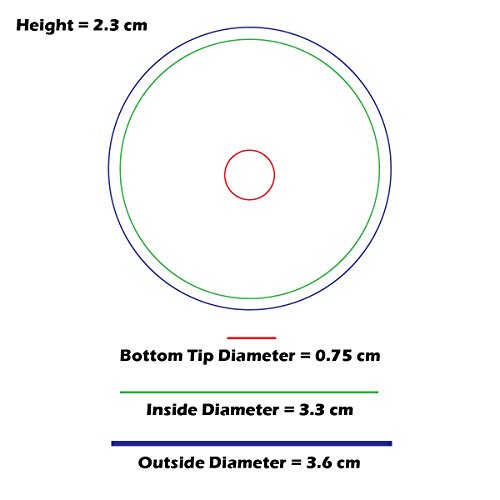 - DIMENSION. Outer Diameter (Top): 3.6 cm | Inside Diamter (Top): 3.3 cm | Spout Diameter (Bottom): .75 cm | Height: 2.3 cm