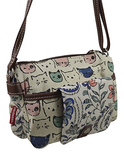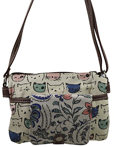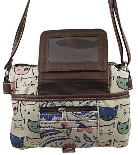 Mini-sized, fully lined roomy cotton bag has soft, faux leather trim accented with brass hardware. This cross body / hispter bag has multiple compartments including ID holder & organizer on the back of the bag. Main and front pocket with zippered access, These are perfect for those items you want to access quickly, like keys, mints, phone etc. Measurements are 7.25" long, 5"tall and 2.5" wide with a 50 inch strap that can be shortened for use as a shoulder bag, it's the perfect size for everyday, hands-free use. The bag fabric sports rows of elephants with upturned trunks (for Good Luck!), Foxes and Owls alternating with rows of Aztec/Tribal/Native designs and more options of printing as cats, stars, etc. Design placement may vary slightly from the photo. Available for a limited time only, this boho chic bag makes a great gift! Cute and small is what you need? So this petite bag is what you need and it is perfect for all ages. With easy zippered access this messenger does its job well and in style. Perfect for all ages, all seasons.Feature