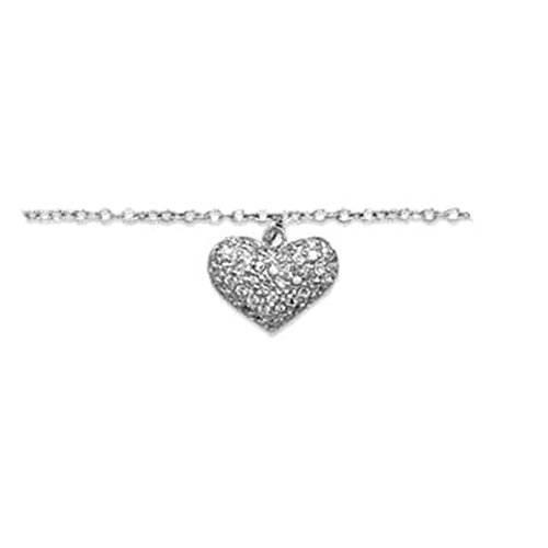 -. Feature : .925 sterling silver with rhodium plate - same as white gold / Sparkling cubic zirconia heart / Reverse of heart has filigree design / Adjustable length from 10 to 11 inches / Gift boxed