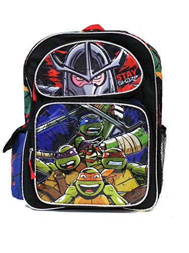 -. Binding : Sports -. Brand : AI -. ClothingSize : Large -. Color : Black -. Department : Boys -. EAN : 0843340099491 -. Feature : 16" Inch Boys School Backpack / Adjustable Padded Shoulder Strap / Water Bottle Net on the Side (Water Bottle Not Included) / Zippered Main Pocket and 2 Front Pockets -. Label : Nickelodeon -. Manufacturer : Nickelodeon -. Model : 5602076 -. MPN : 13b-c1-bpf-tmnt-pt09949 -. NumberOfItems : 1 -. PackageQuantity : 1 -. PartNumber : 13b-c1-bpf-tmnt-pt09949 -. ProductGroup : Sports -. ProductTypeName : OUTDOOR_RECREATION_PRODUCT -. Publisher : Nickelodeon -. Size : Large -. Studio : Nickelodeon -. Title : Full Size Black and Red Teenage Mutant Ninja Turtles Kids Backpack -. UPC : 843340099491