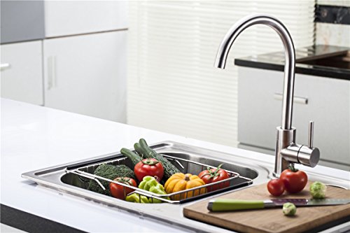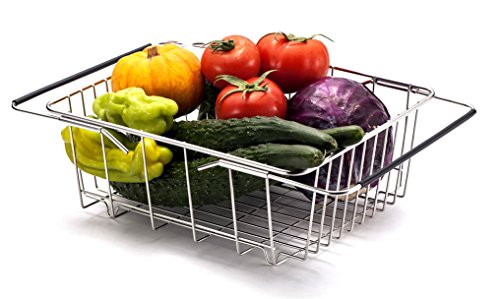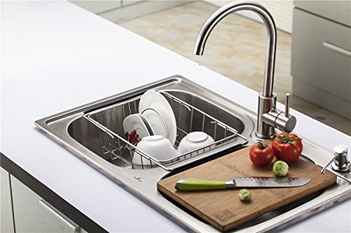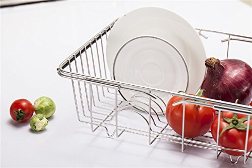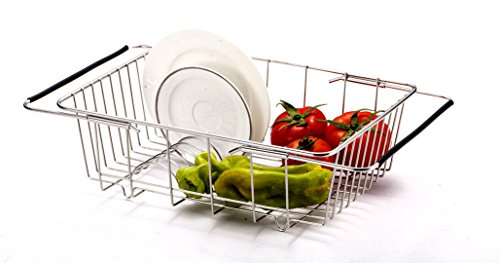 -. Feature : The dish drainer is 13.2L x 9.84 x 4.3'' H ; with handles fully extended it is 16.1" Long in order to fit most sinks.Great space saver especially for small kitchens. / The dish rack is made by 304 stainless steel resists corrosion, Constructed from durable, non-slip,easy to clean. / Ideal for drying dishes with limited counter and storage space / Space-Saving sink dish drainer and drying rack / FUNTIONAL DESIGN - Versatile drying rack ,dry dishes, clean fruit and vegetables. to show the quality of life.