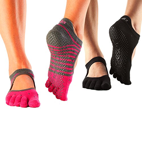-. Binding : Apparel -. Brand : toesox -. Department : womens -. Feature : STAY IN PLACE - When you're practicing for your next recital or just trying to get your weekly yoga session in sliding all over the place just gets in the way. A patented non-slip sole gives you plenty of traction so your feet will remain firmly in place. A fitted heel design prevents unwanted bunching or twisting so you won't have to stop in the middle of your move just to readjust. / FIVE TOES - The unique five toe design is less restricting then ordinary socks which helps increase blood circulation throughout your feet. The freedom your toes receive provide relief from painful bunions while activating muscles for advanced healing. Strengthening of your muscles can help properly align your bones and train your toes to uncross naturally. / USEFULNESS - Anytime you're doing a barefoot excercise your feet become exposed to harmful bacteria and germs. Well now you can keep your feet covered and in style while you get your daily stretch on. The textured sole and open foot design makes the Bellarina socks ideal for pilates, yoga, barre, or dance. / EXTENDED CARE - Maintaining your socks properly will not only help them last longer but also prevent unwanted fraying or fading. It's recommended to machine wash these socks inside out and to dry on a low heat. No ironing should be required. / PRODUCT SPECIFICATIONS- Comes as a 2 pack; Available in multiple colors and sizes! Please view size chart for proper sizing. -. Label : ToeSox -. Manufacturer : ToeSox -. PackageQuantity : 1 -. ProductGroup : Apparel -. ProductTypeName : SOCKSHOSIERY -. Publisher : ToeSox -. Studio : ToeSox -. Title : ToeSox Womens Full Toe Bellarina Grip Non-Slip Yoga Socks 2 Pack