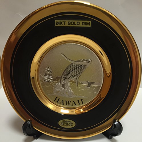 Studio : Dynasty Publisher : Dynasty Binding : Kitchen Product Description This Fine Porcelain Collectible Plate with HAWAII Whale design is a great gift from Hawaii! This collectible plate has 24KT gold rims. Color: Black, gold. Approximate Size: 6.5 inches (diameter). Display stand and packaging box included. Fast shipping right from Hawaii to your home. Check out "TIKI PRODUCTS" at the top of the page for more souvenirs! 0