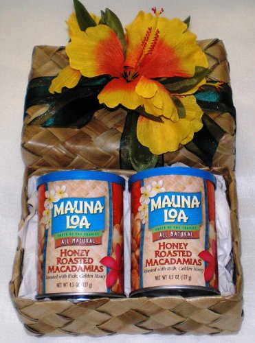-. Binding : Misc. -. Brand : Mauna Loa -. EAN : 0662419718145 -. Feature : Hawaiian Mauna Loa Honey Roasted Macadamia Nuts Gift Basket (color and design of ribbon may vary) / Great for gift giving / Relax and enjoy gourmet snacks from the Islands / All of our products are made in Hawaii -. PackageQuantity : 1 -. ProductGroup : Grocery -. ProductTypeName : GROCERY -. Title : Hawaiian Mauna Loa Honey Roasted Macadamia Nuts Gift Basket -. UPC : 662419718145