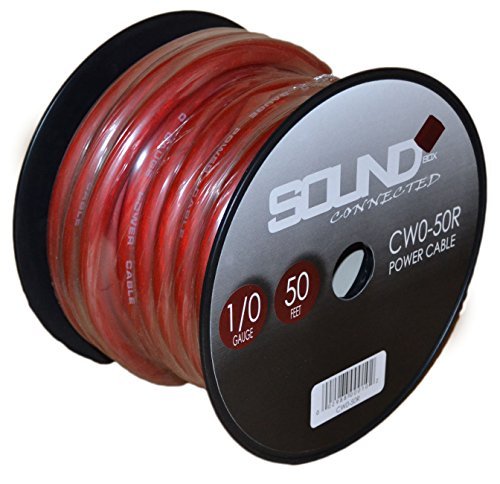 SoundBox Connected 0 Gauge Red Amplifier Amp Power/Ground 1/0 Wire 50 Feet SuperFlex Cable 50' Spool