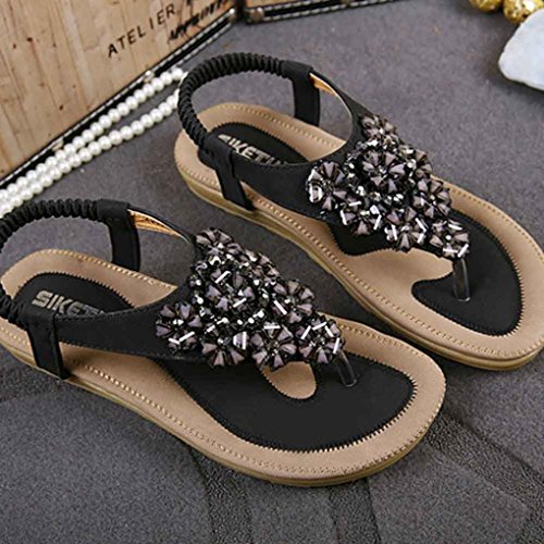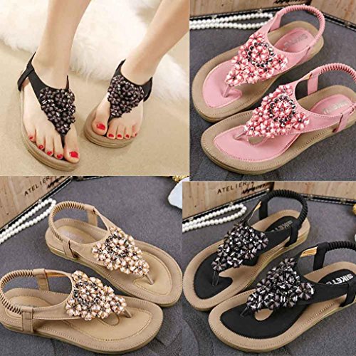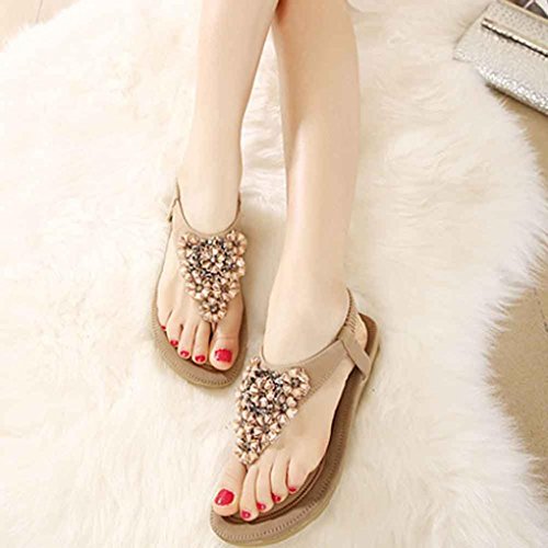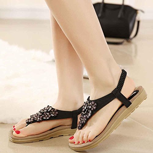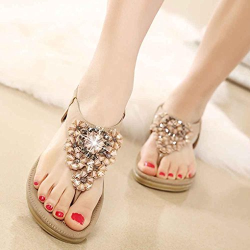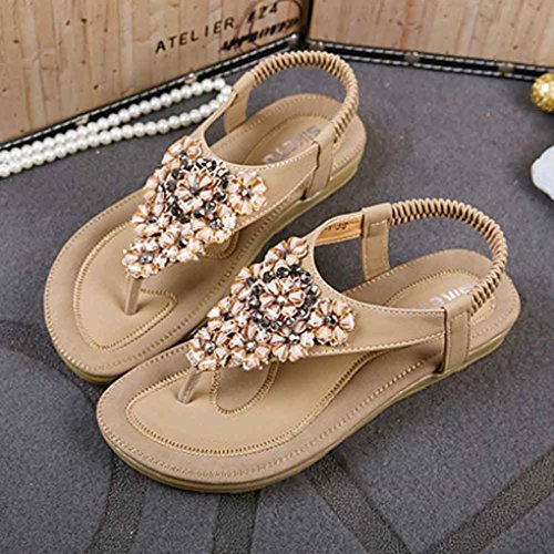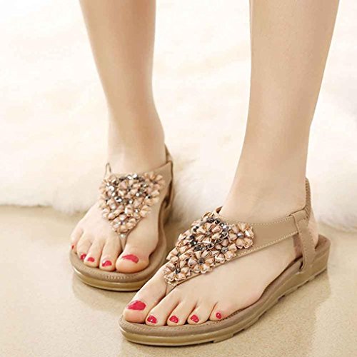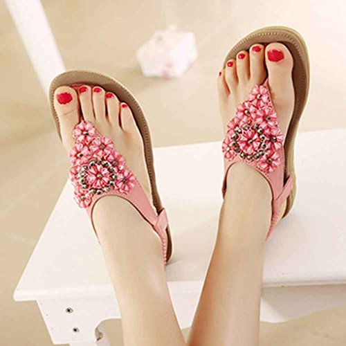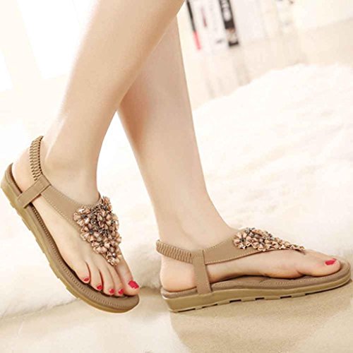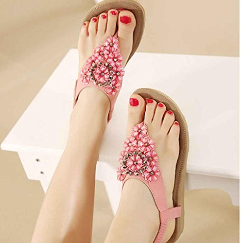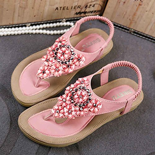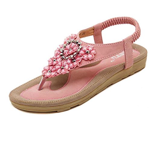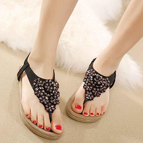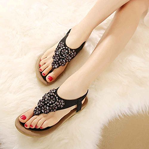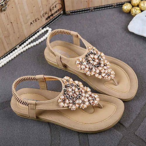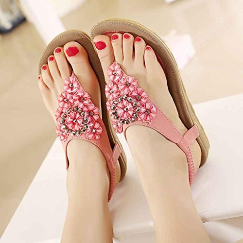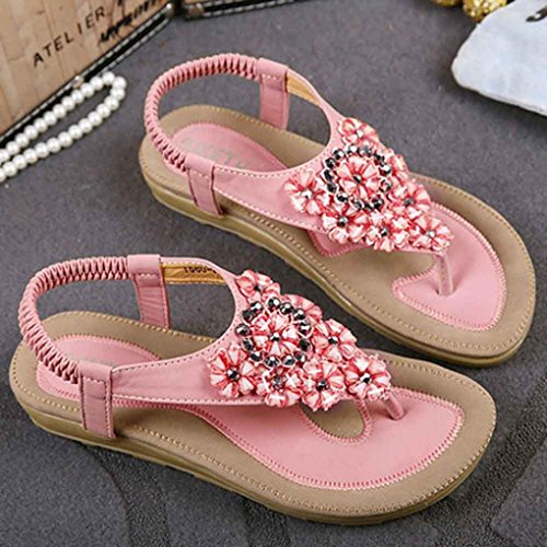 Start Women Summer Beaded Flower Flats Herringbone Sandals Beach Shoes