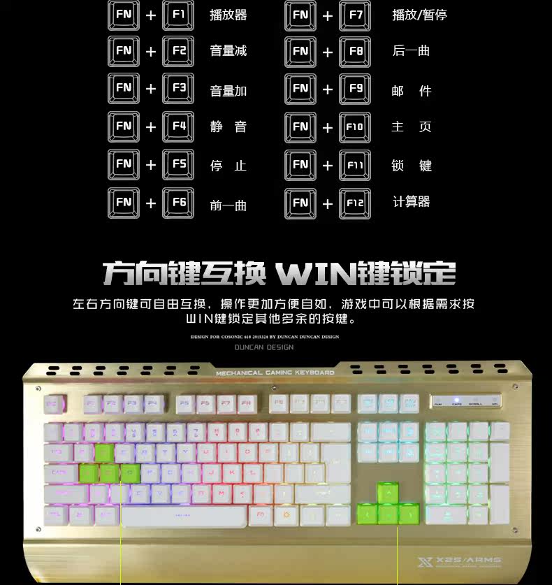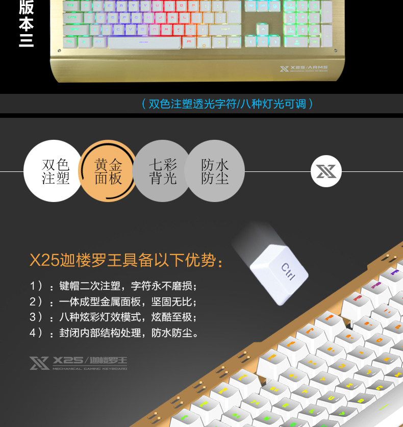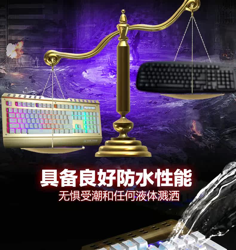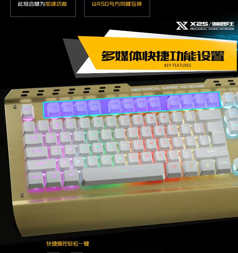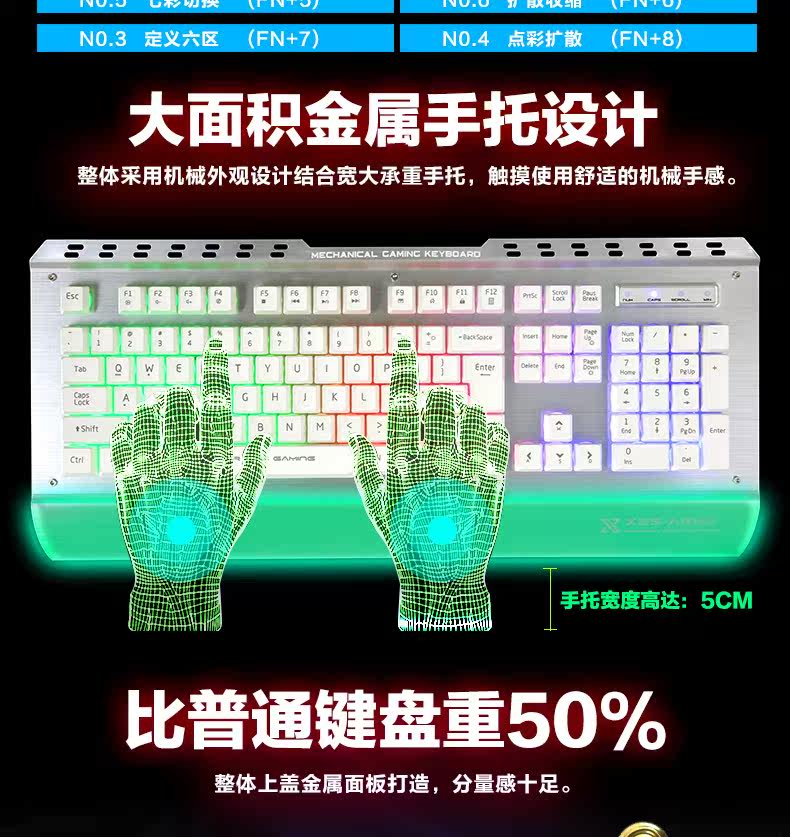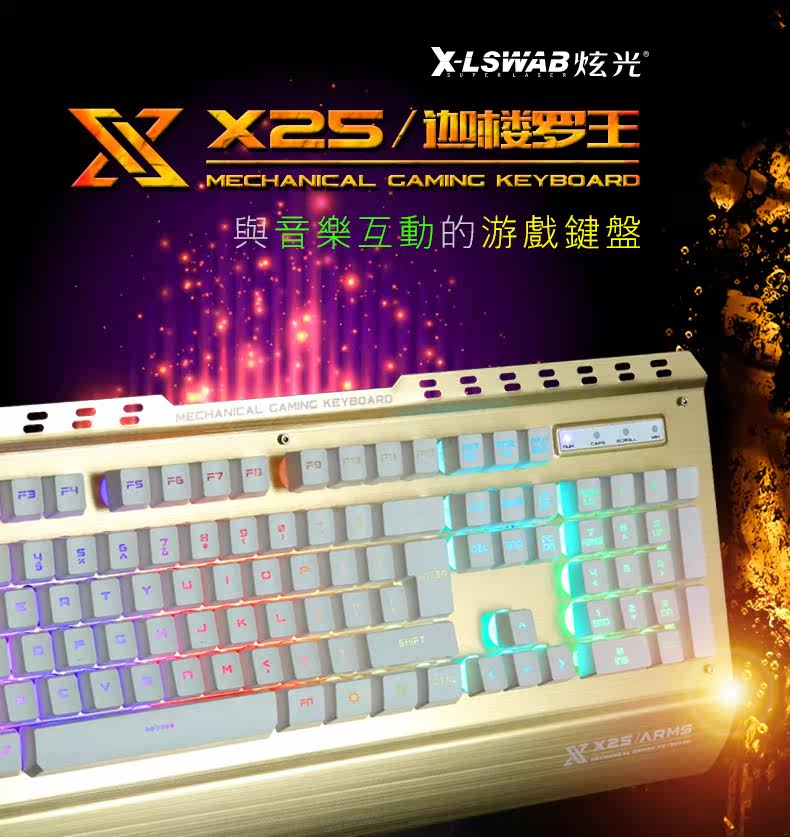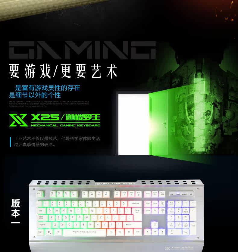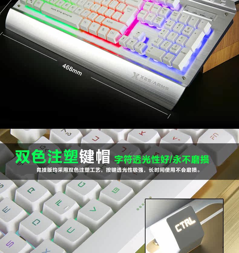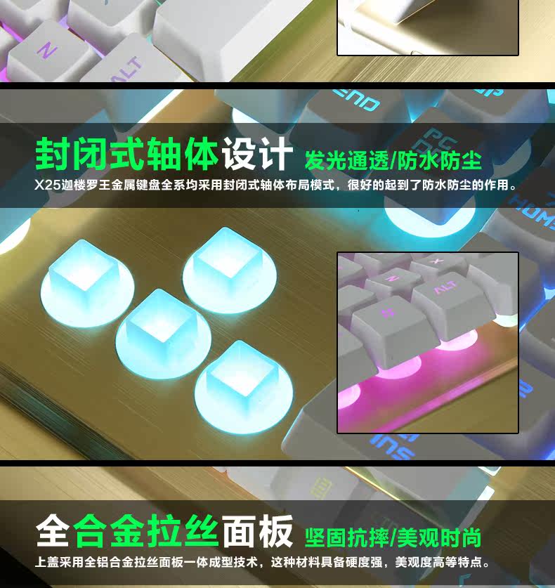 炫光X25金属游戏键盘有线电竞背发光usb家用电脑台式机械手感lol