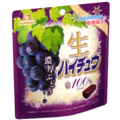 原材料:砂糖、水あめ、濃縮グレープ果汁、植物油脂、ゼラチン、デキストリン、酸味料、乳化剤、香料、アカキャベツ色素