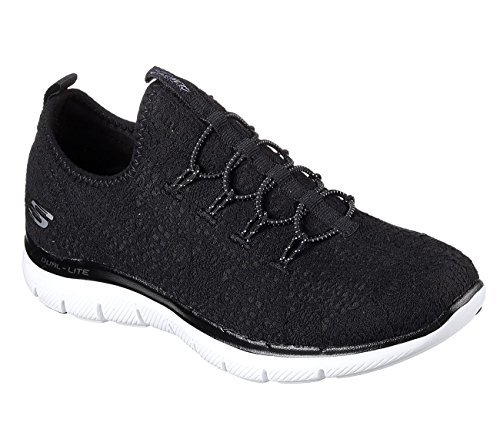 Binding : Apparel Product Description *Crocheted fabric brings a fresh fashion finish to this classic athletic sneaker *Floral-textured crocheted fabric upper with a one-piece design *Fabric upper is naturally stretchy for added comfort *Bungee laces for easy slip-on wear and a stay-put fit *Air-Cooled Memory Foam cushioned comfort insole *FlexSole 2.0 lightweight, shock-absorbing midsole *Flexible rubber traction sole 0