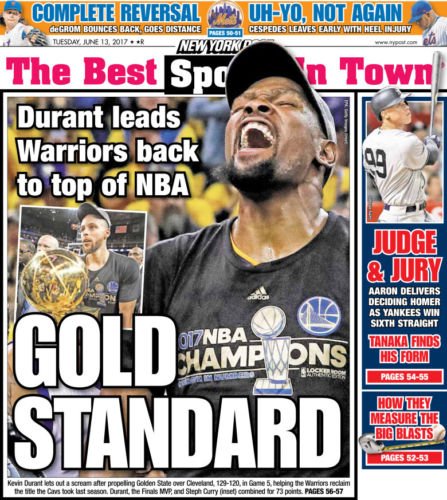 NEW YORK POST NEWSPAPER 6/13/17 KEVIN DURANT GOLDEN STATE WARRIORS NBA CHAMPIONS