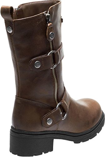 Studio : Harley-Davidson Publisher : Harley-Davidson Binding : Apparel Product Description A mid-calf women’s boot with just the right amount of attitude. The full grain leather Ardsley has a lightweight outsole and heel, with an YKK locking inside zipper for fashionable convenience. The added decorative loop buckling and iconic Harley-Davidson bar and shield on the upper shaft, gives this boot more than enough amount of moto edge. 0