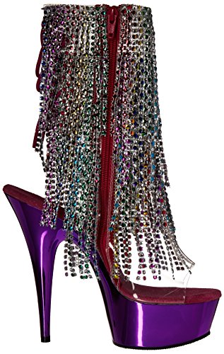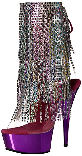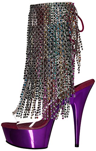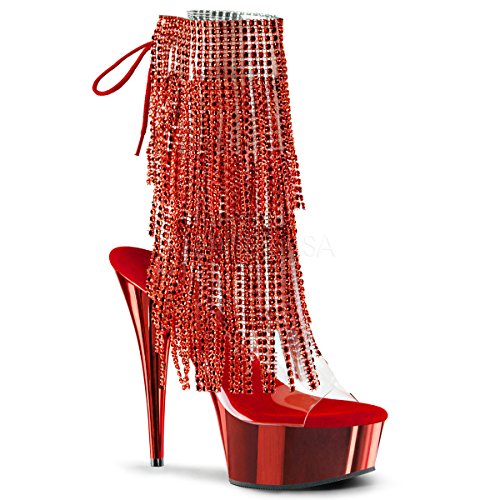 Studio : Pleaser Publisher : Pleaser Binding : Apparel Product Description 6 (15.25cm) heel, 1 3/4 (4.5cm) chrome plated platform open toe/heel back lace-up ankle boot featuring 4-layer chrome plated, simulated rhinestone fringe, inside zip closure 0