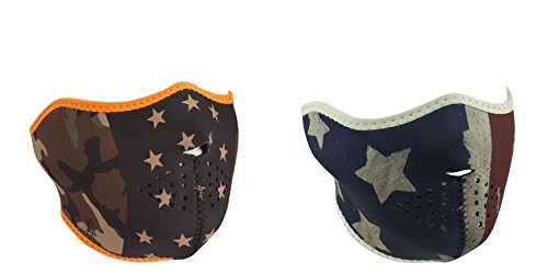 -. Title : Bundle (2 Items): 1 ZanHeadgear 'Camo Stars' Half Face Neoprene Face Mask -AND- 1 Zan 'American Patriot Flag' Half Face Neoprene Face Mask, Ski Mask
