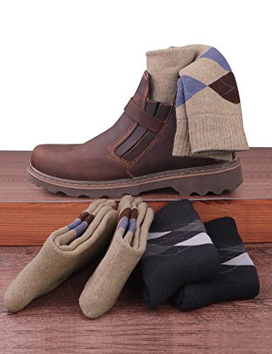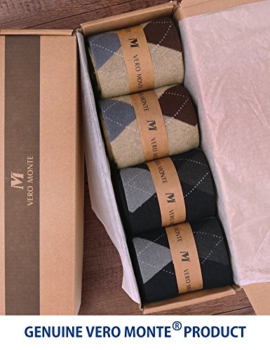 -. Binding : Apparel -. Brand : VERO MONTE -. Department : mens -. Feature : Genuine VERO MONTE Trademarked Socks Product - Design and Quality by VERO MONTE FASHION LLC of U.S.A. - In Business Since 1998. - This product is the best bet of VERO MONTE for winter 2018. / THICK & SOFT & WARM TERRY COTTON - Thick terry knitting using rich and soft cotton for elasticity, softness, breathability and comfortability (from the cushioned terry cotton texture) - THICK & WARM & SOFT, perfect for winter. / SUPER COMFORTABLE - Thick terry cotton knitting proves even greater breathability, keeping your feet dry all day long - Breathable toe house for relaxed and dry toes - 3-dimensional profiling for shape forming and comforts - Elastic and enhanced cuffs hold socks comfortably in place. / MIXED-COLOR ARGYLE BOOT SOCKS ARE WINTER MANHOOD - Argyle is the classic designed pattern for men; couples well with men's winter shoes and boots - 2 color scheme combos (4 pairs): one scheme is (black, grey, olive), the other is (coffee, metal grey, dark brown); all are men's classic winter colors. / ADDED VALUES - Applicable to many occasions: Casual, Wear to Work, Home, Sports, etc. - Gift set: Product comes in a premium quality gift box, ready for gift giving. - Satisfaction Guaranteed! If not, we shall send a free replacement or issue a full refund. - For free customer service, please contact us https://www.amazon.com/seller/VERO-MONTE -. IsAdultProduct : 0 -. ProductGroup : Apparel -. ProductTypeName : SOCKSHOSIERY -. Title : VERO MONTE 4 Pairs Winter Terry Cotton Boot Socks - Warm Socks Thick Socks Men